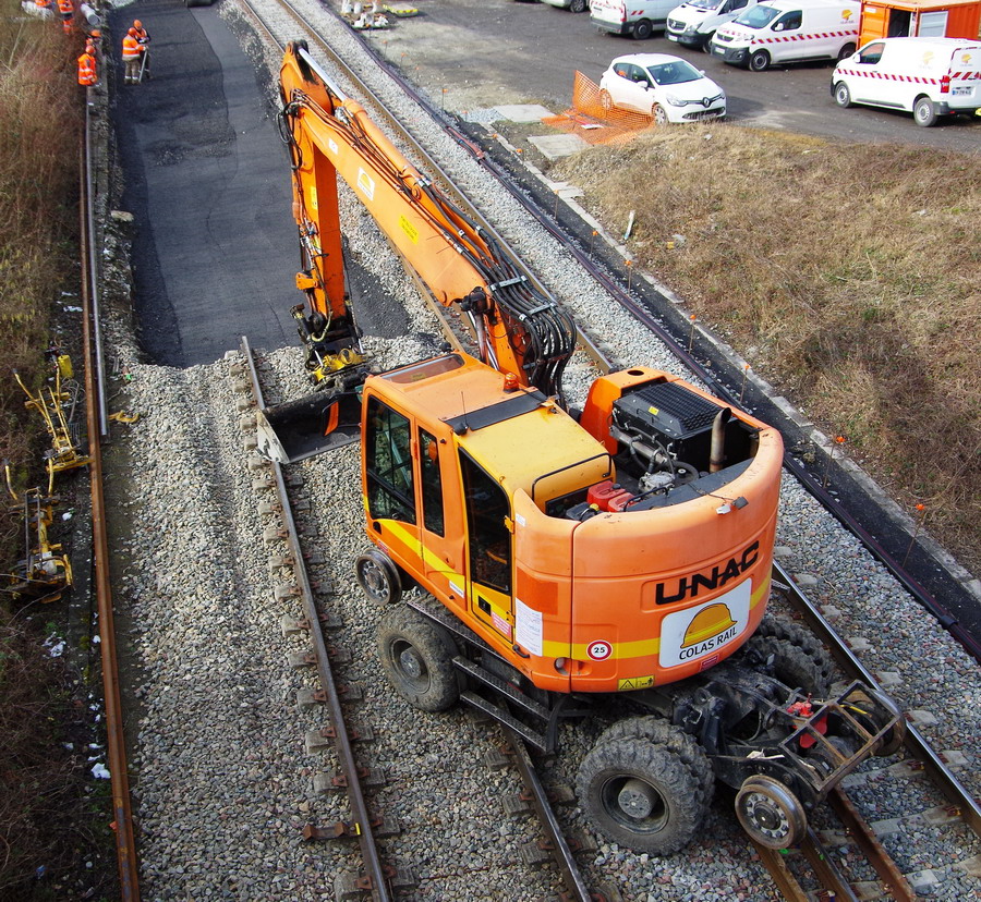 avec la Pelle Rail route UNAC 22 TRR n°CATM315DEW5M05520 de Colas Rail D 100 2479