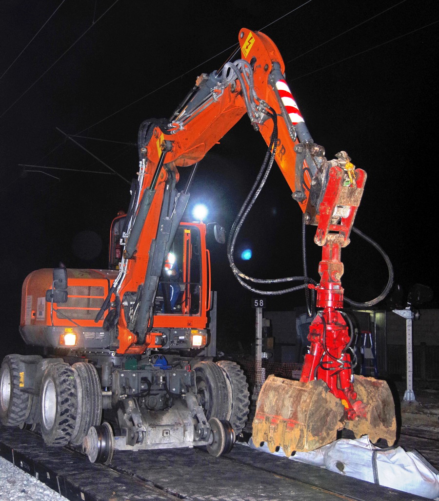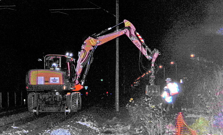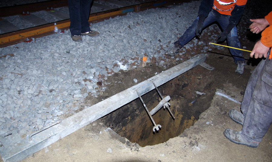 - préparation des trous pour le coulage du béton pour le mâtage au niveau du PN 58 à Chauny nuit du 03 au 04-05-2019