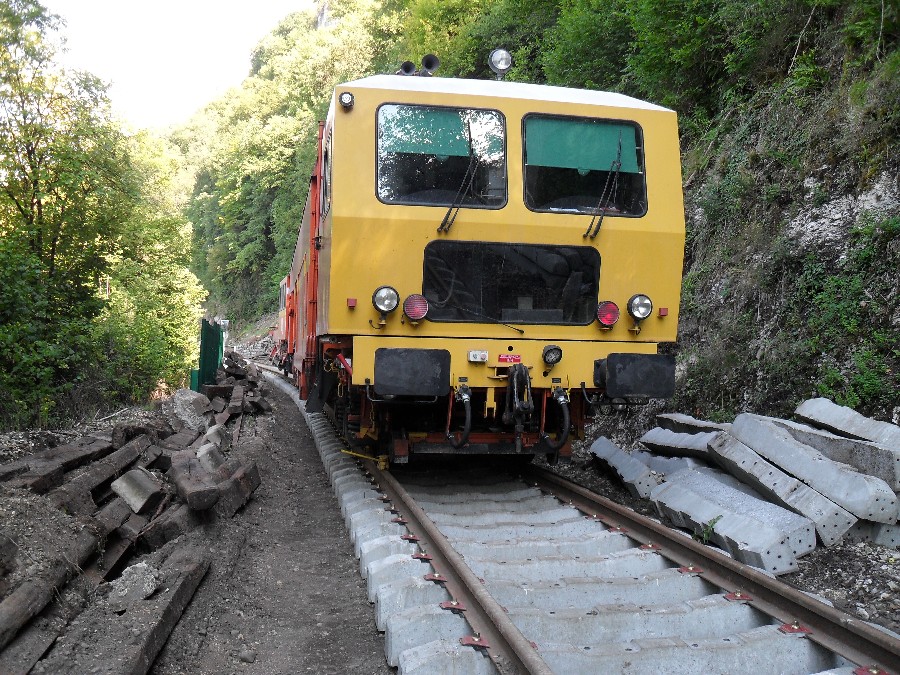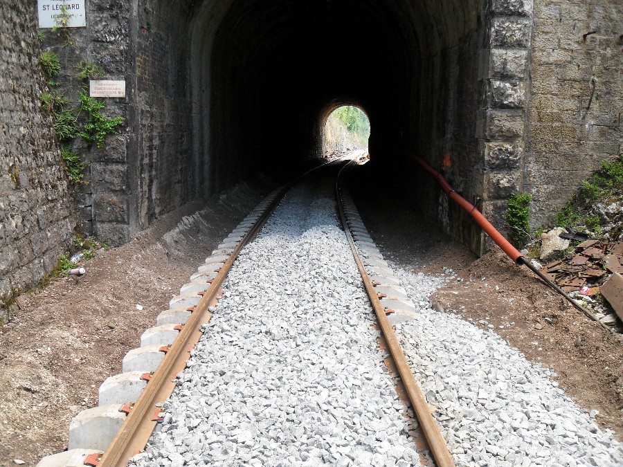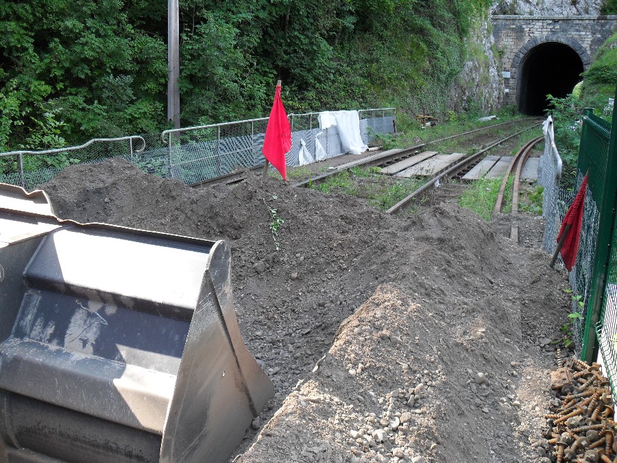 Retour dans la côte de Morre, le ballastage à donc commencé, et le chantier en est déjà au niveau du dernier tunnel, celui de la porte taillée, le plus dure à donc été fait.