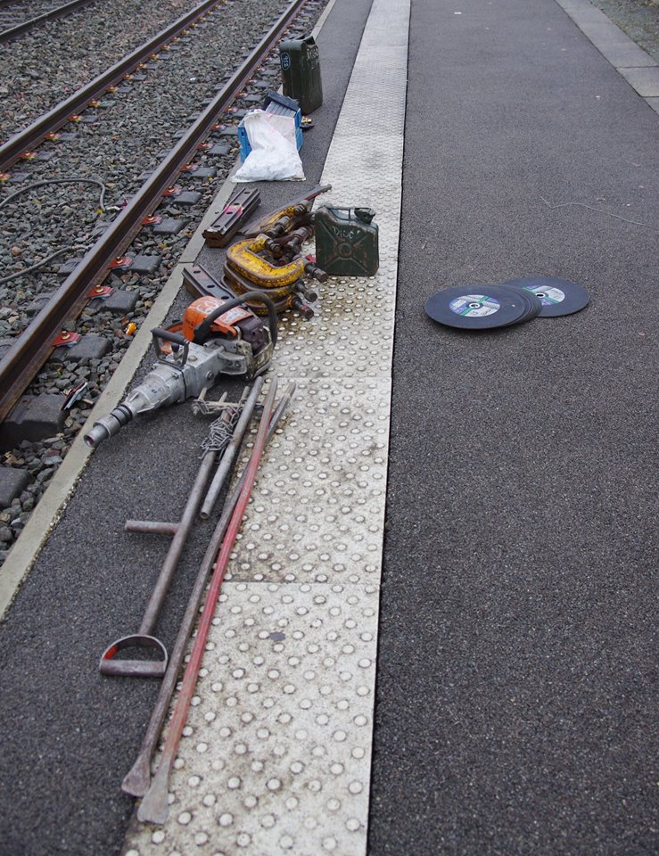 • Possibilité d'utiliser la boulonneuse sur un chariot support pliable à 3 galets facilitant le travail de l'opérateur pour les opérations de tirefonnage ou de boulonnage en voie