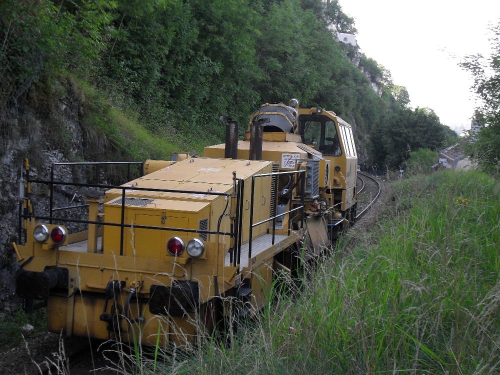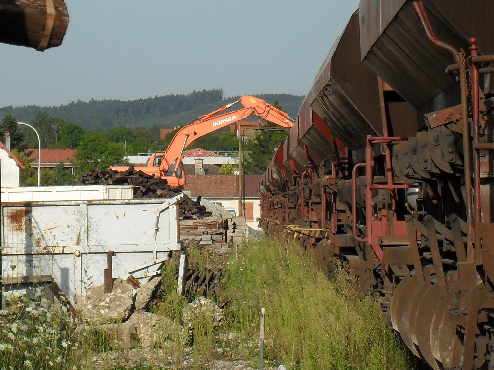 Je sais pas d'ou il arrive, mais il était pas là ce WE, il a dû arriver aujoud'hui juste aprés que la rame des tombereaux ai quittée les lieux, est juste avant que la voie évidement soit démontée pour qu'il puisse monter. Un indices, ces tampons on été graissé récement ! ! !