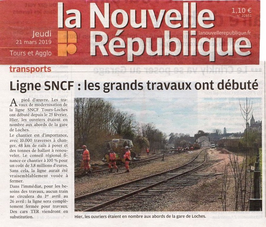 Voici un article de la Nouvelle République édition Touraine Est (Loches) du jeudi 28 mars 2019 n°22657
