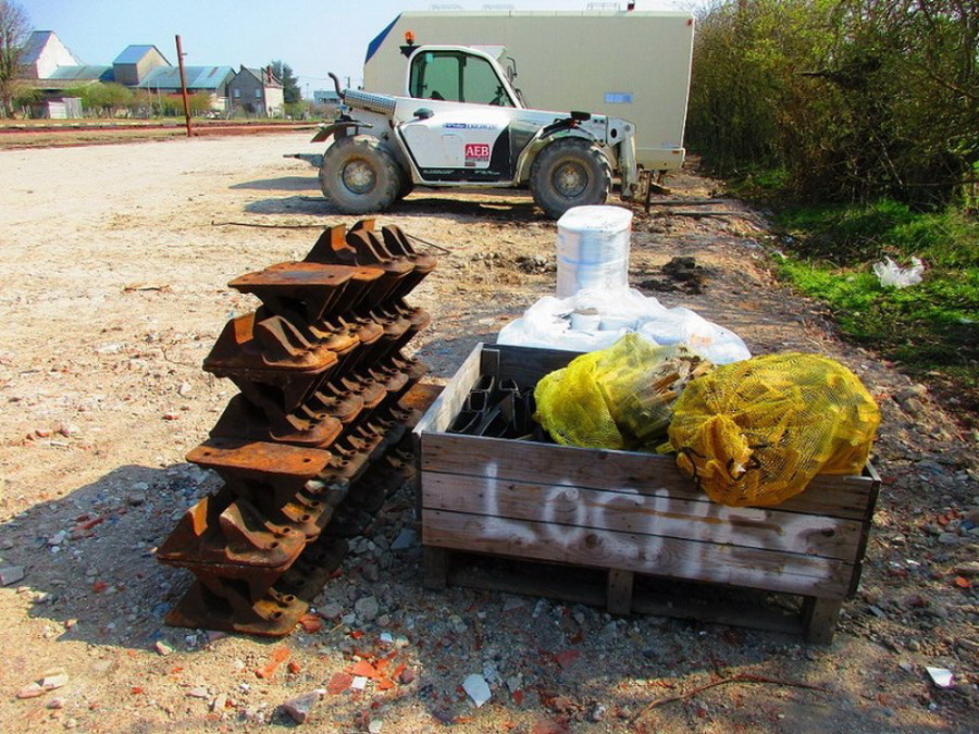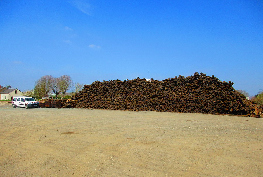 Le stock de traverses usagées grossi avec l'avancement du chantier :