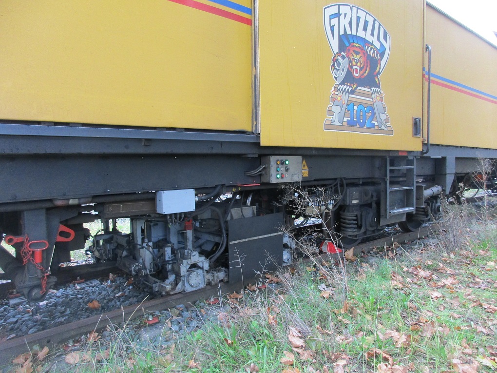 Hasard et coup de chance au cours d'un bref séjour dans la région. Mardi 22 Octobre 2019 un train meuleur de rails stationne sur une voie en impasse en gare de Sainte Foy la Grande. C'est la rame GRIZZLY 102 de la société Suisse SCHEUCHZER :