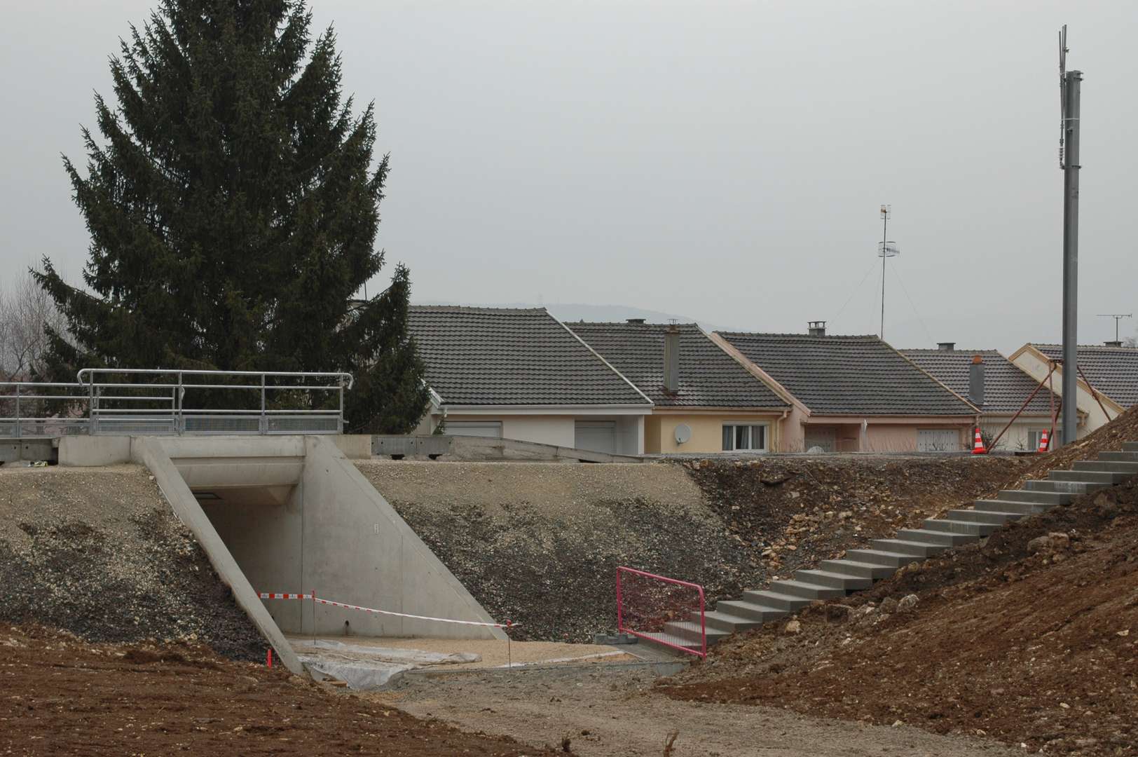 Je suppose que le chemin de randonnées sera dévié par le passage inférieur de la rue du Breuil situé quelques centaines de mètres plus loin vers Delle. Un escalier vers la rue du Coteau a été ajouté.