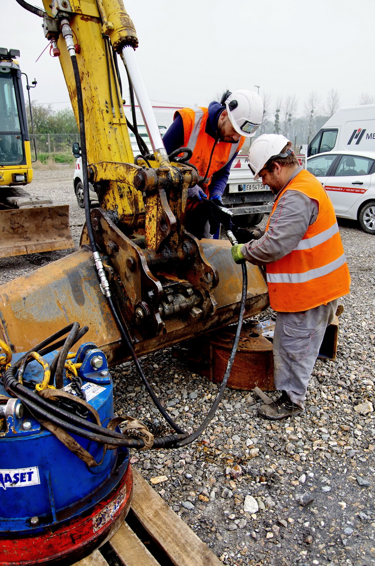 préparation de la Pelle route Komat'su PC 138 US 13 T d'ENCO sur la base de travaux de Laon le 09-04-2018