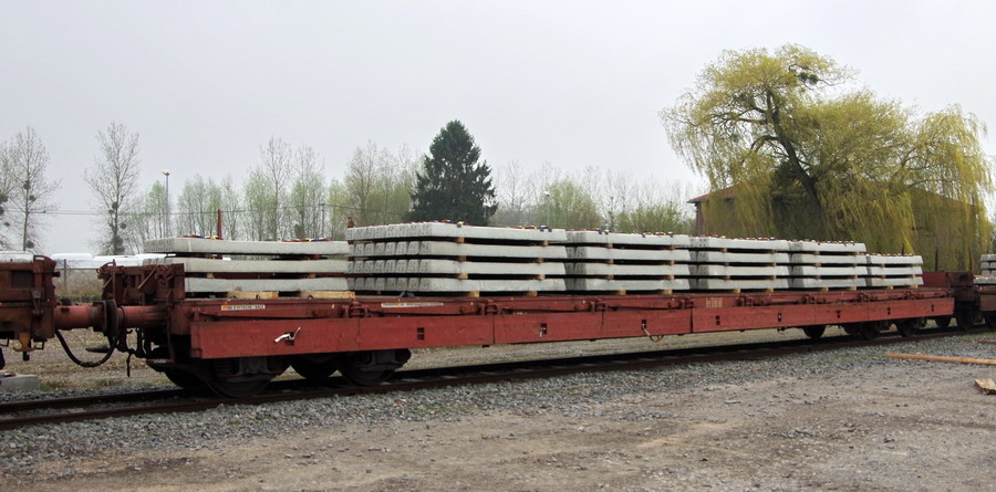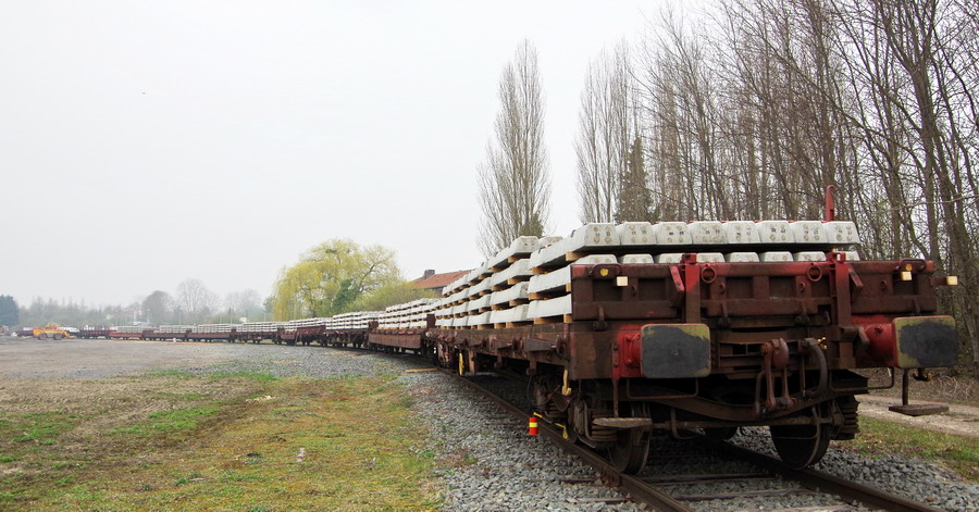 arrivée sur la base de travaux de Laon aussi le 09 avril 2018 d'une rame de traverses béton pour le stock du RVB