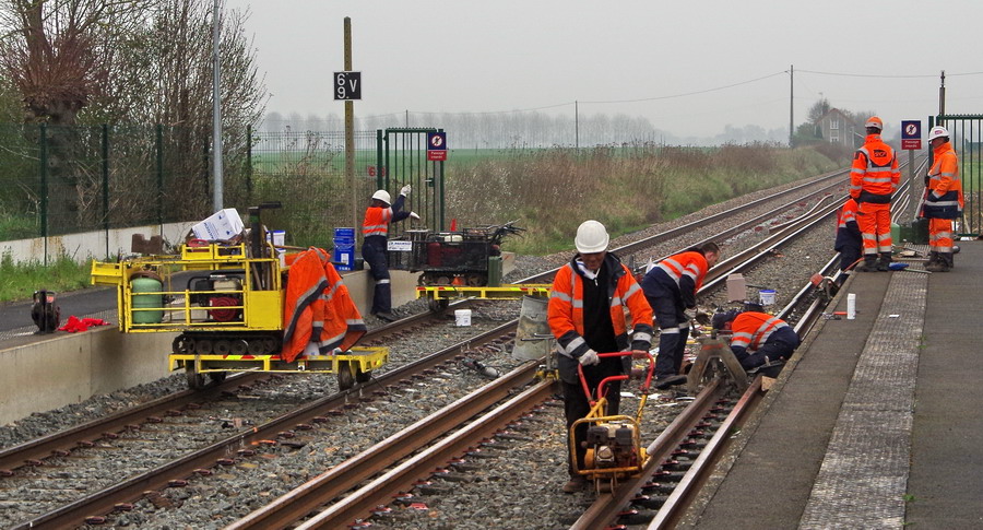préparation pour une séance de soudure aluminothermique en gare de Flavy-le-Martel le 09-04-2018