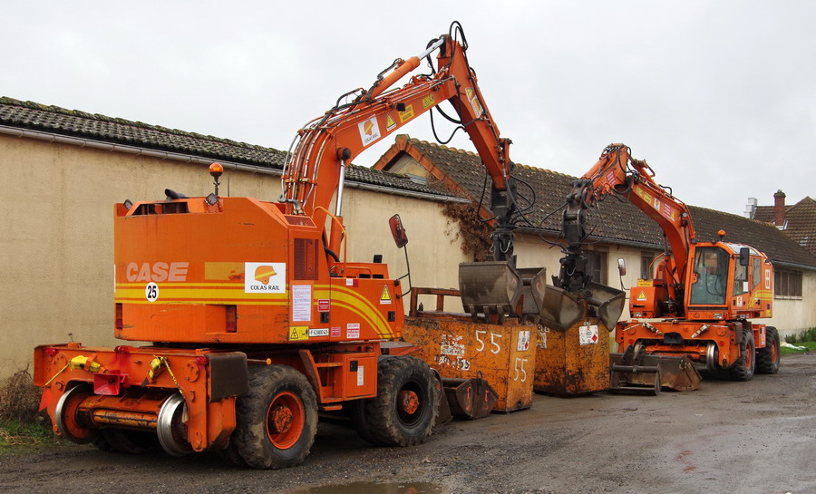 on trouve aussi deux Pelles Rail route CASE de Colas Rail