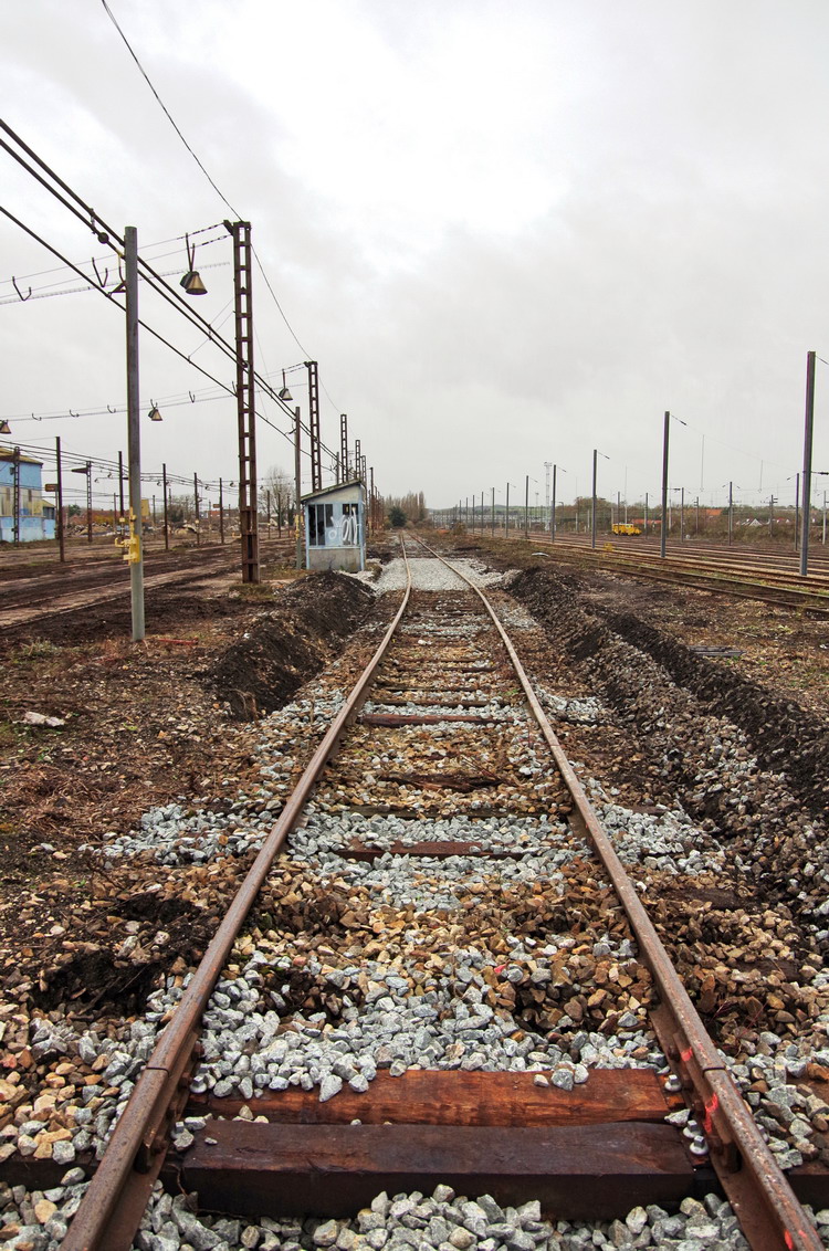 couche de ballast de 5 cm pour le relevage du rail sur l'Estacade sur la base de travaux de Longueau