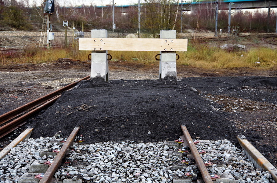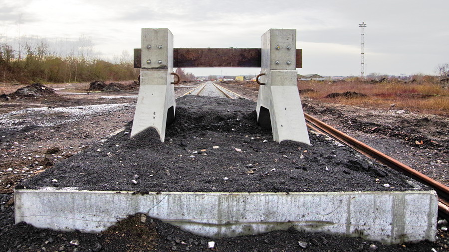 la voie en estacade de 500 m de long et son heurtoir en béton à Longueau le 18-12-2018