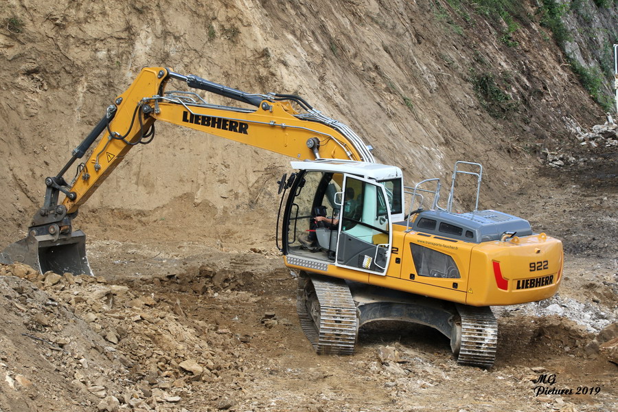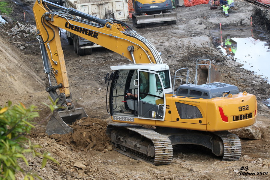Pelle à chenilles Liebherr 922 de TFaucher TP à Limoges pour des travaux sur la nouvelle arrière sur l'ex triage du Puy-Imbert