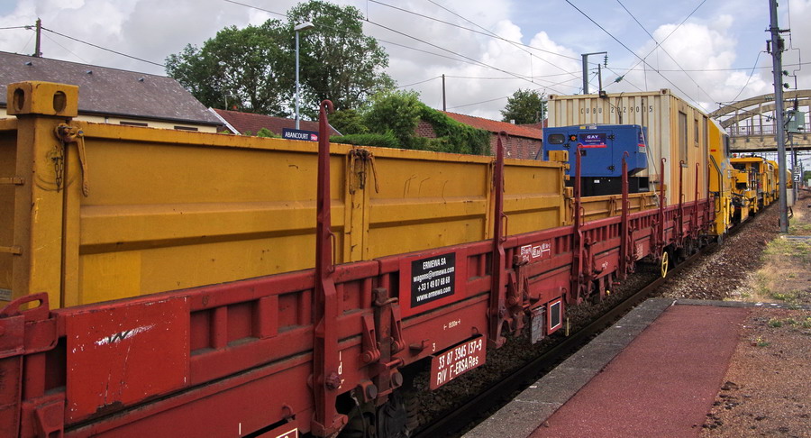 Trains de coupe et de pose P95 - 99 87 9 311 505-1 de Transalp Renouvellement passage en gare de d'Amiens-Saint-Roch