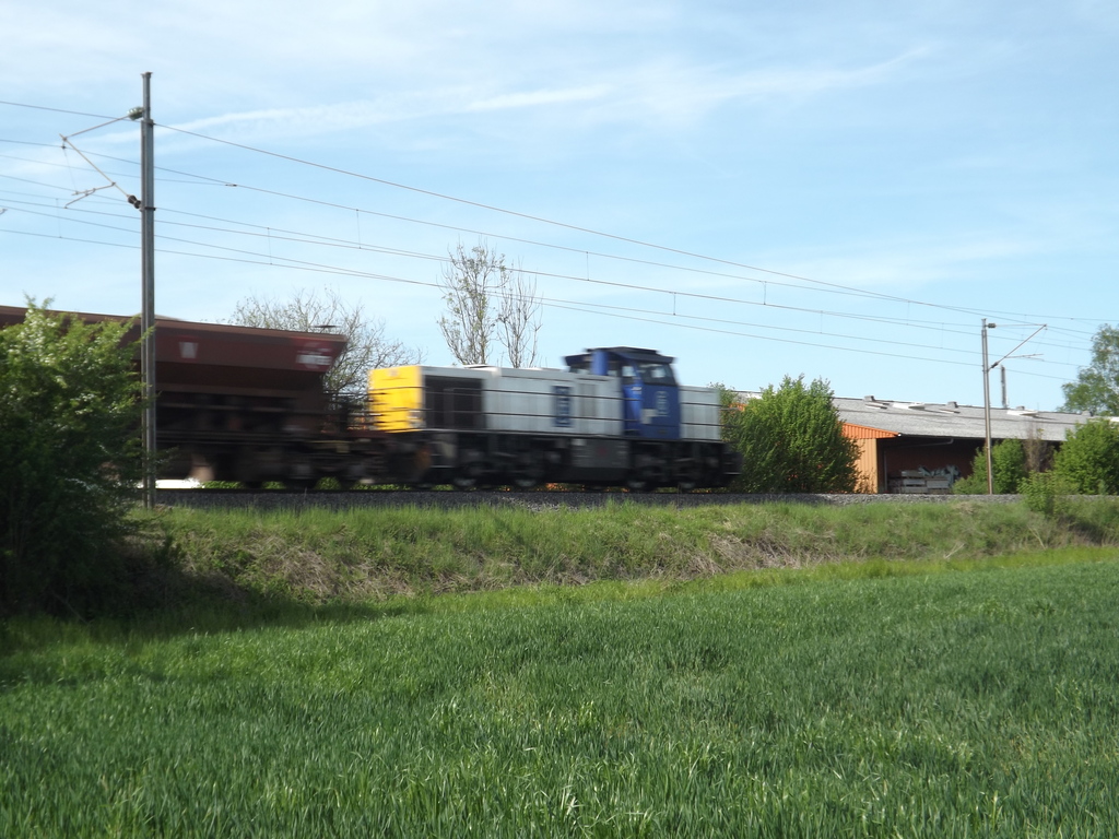 le 7/5/15 à Argiésans j'ai pu choppé les 5 trains de travaux qui se rend sur le chantier