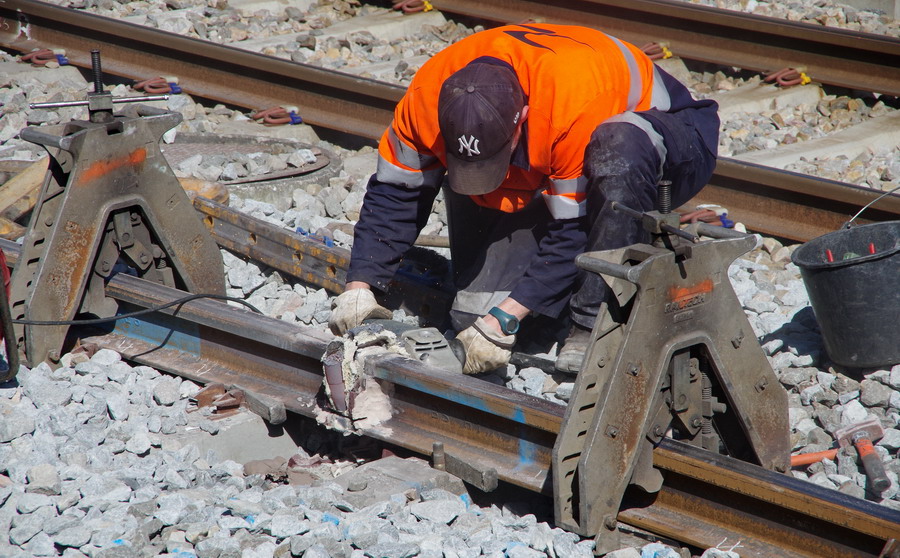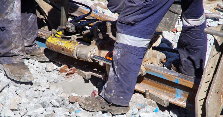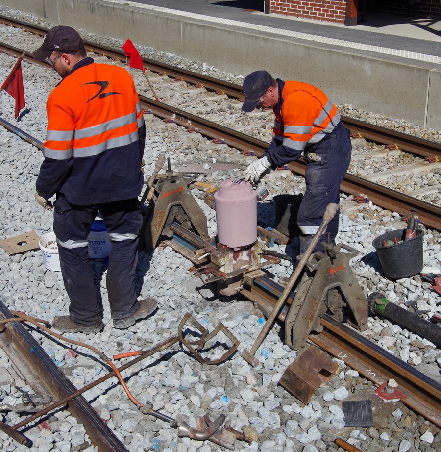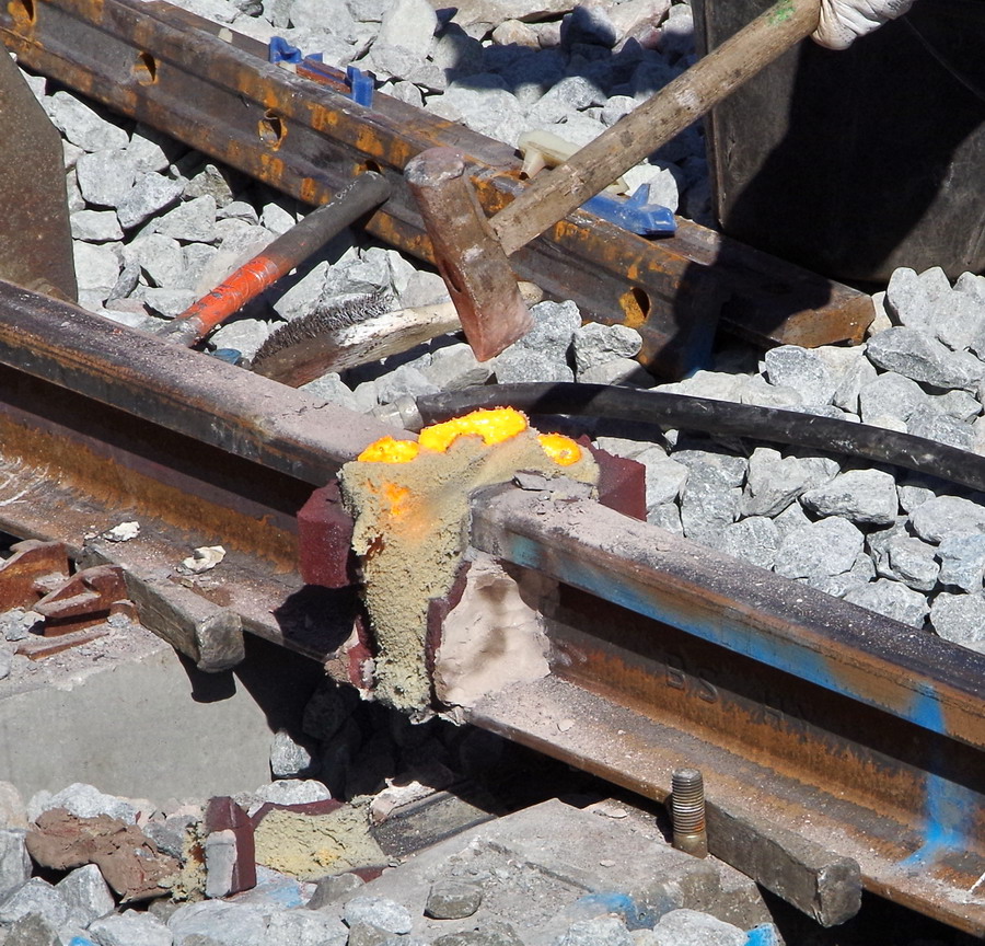 avec une séance de soudage aluminothermique