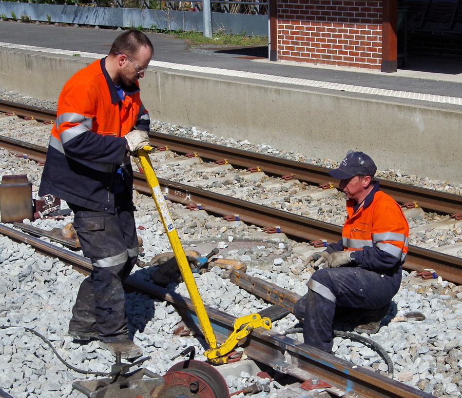 séance de soudage aluminothermique en gare Flavy-le-Martel le 11-04-2018