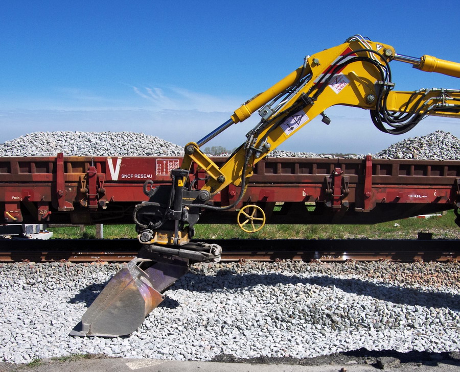 avec quelques travaux de ballast avec la Pelle Rail route Atlas 1404 ZW n° 241Z301905 de Néoloc 3 [RR10] avec une