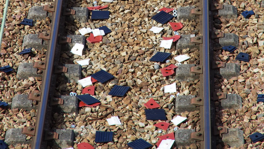 mise en place des Chevalet Railtech pour la séance de soudure aluminothermique en gare de Flavy-le-Martel