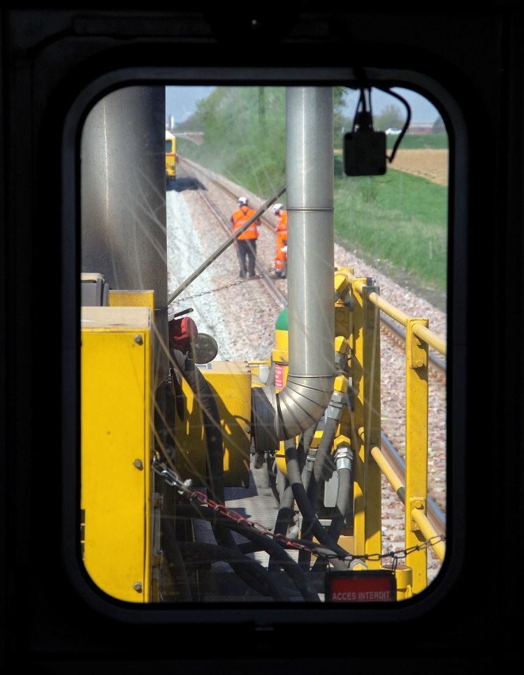 vue sur la voie 2 du poste de conduite de la Régaleuse SSP 230T-2B Dynamic - 99 87 9 125 529-7 Meccoli à Sommette-Eaucourt le 19-04-2018