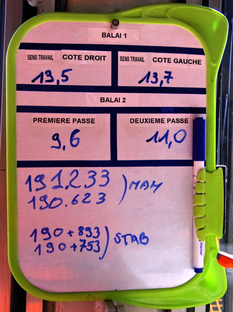 tableau pour le marquage des passes de régalage avec la SSP 230T-2B Dynamic - 99 87 9 125 529-7 Meccoli à Sommette-Eaucourt le 19-04-2018