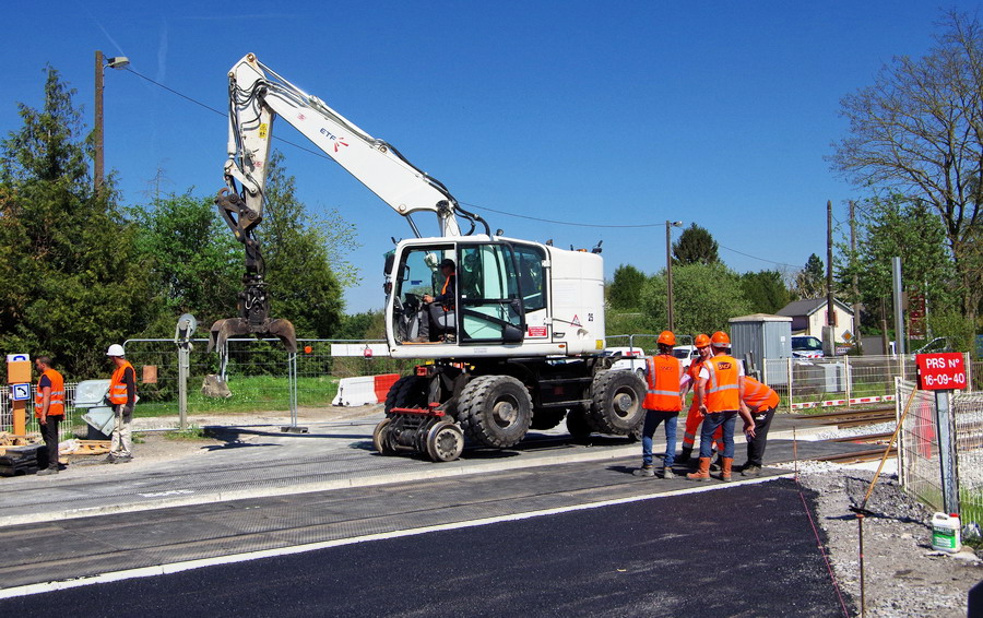 et maintenant au PN n°36 d'Eppeville avec un rassemblement de Pelles rail route