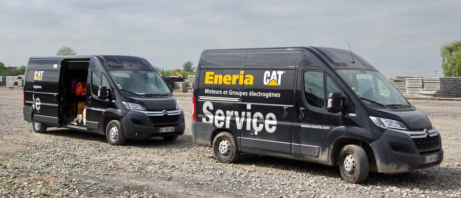 les fourgons Ford et Citroën de maintenance rapide d'Eneria Cat SAV à Laon le 24-04-2018