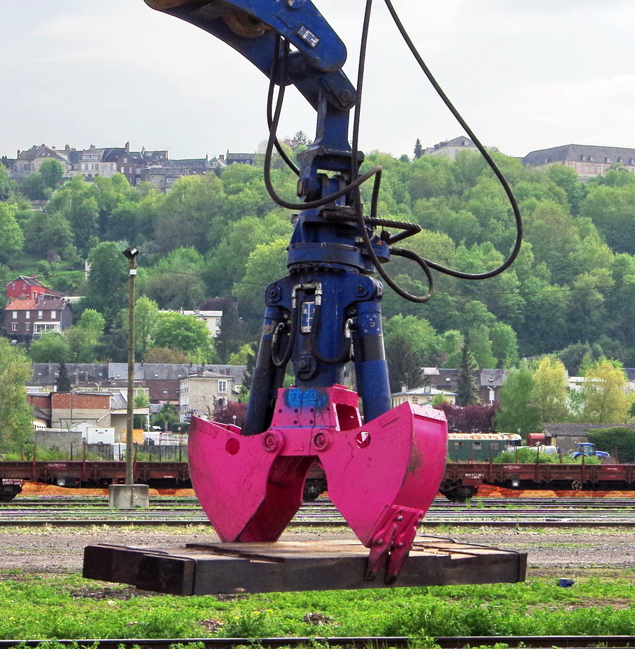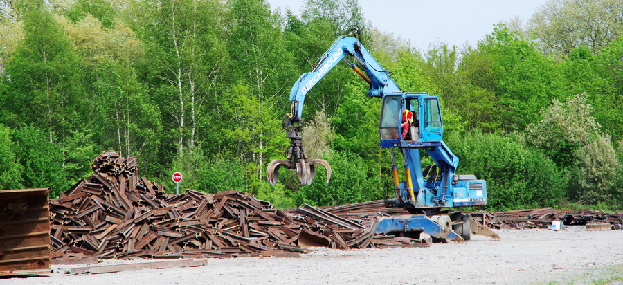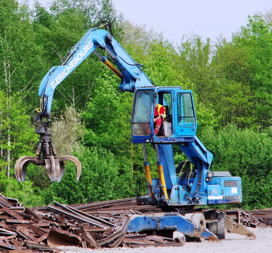 avec l'utilisation de la Pelle Liebherr de type A 902 Litronic n°3575347 de 1998 de la société Derichebourg Environnement pour la collecte, la gestion, le recyclage et la valorisation des déchets