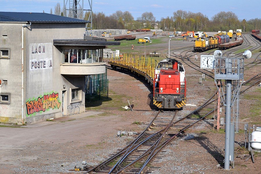 voici des photos du 11 avril 2018 de la base de travaux Meccoli/ETF SNCF RESEAU de la gare de Laon