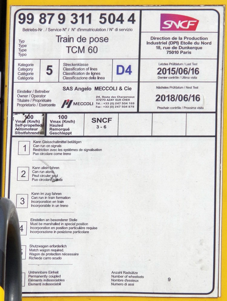 - Train de pose TCM 60 - 99 87 9 311 504-4 Meccoli