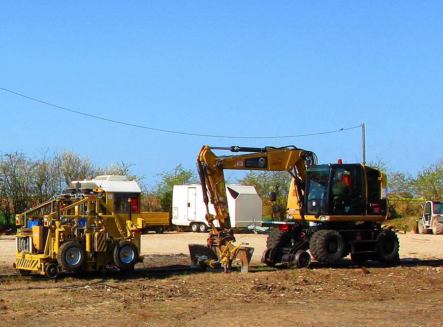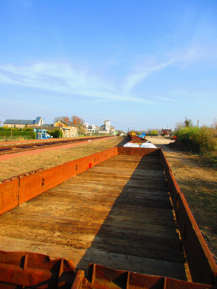 les engins de travaux (lorrys et bourreuse) sont remisés en gare de Reignac sur Indre. le 29-03-2019