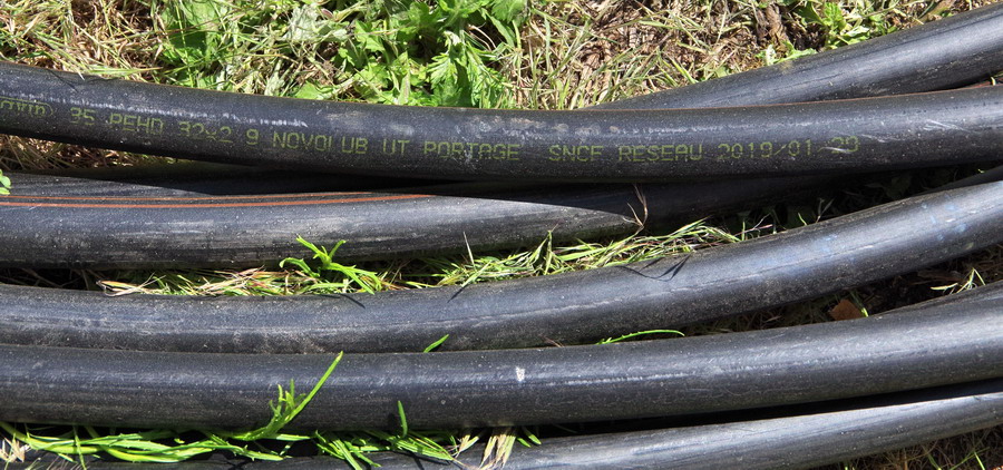 en PEHD, pour passer le câble de fibre optique par injection d'eau dans la gaine et pousse par automate qui se fera un peu