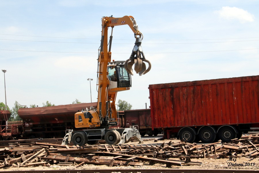 déblaiement des déchets de rail et de traverses en bois par la société SIRMET Puy-Imbert le 04-06-2019