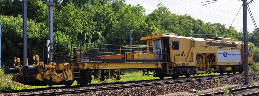 Bourreuse B45D Matisa n°4538 - 92 87 9 222 013-8 - GCF sur le train de ballast en gare de Poix de Picardie le 20-08-2019