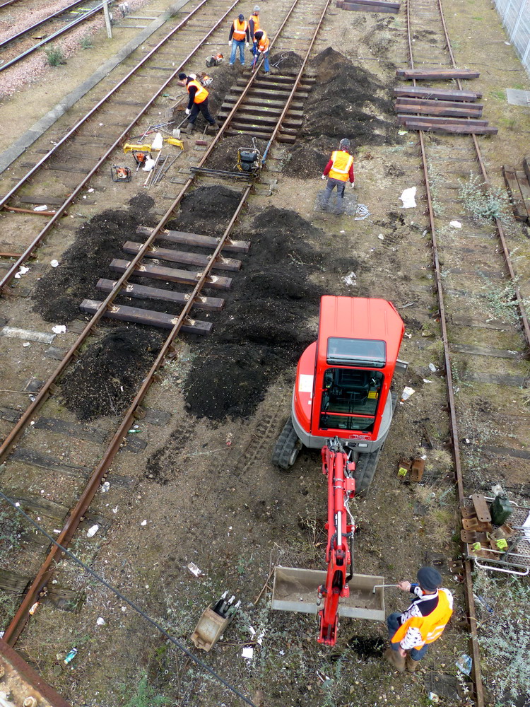 Première partie avec l'équipe d'Aquitaine Rail photos des véhicules sur http://www.forum.sttx.fr/viewtopic.php?f=101&t=4051&sid=d9e4fe425a40078bae7524db00074f42 pour un changement de traverses sur une des voies