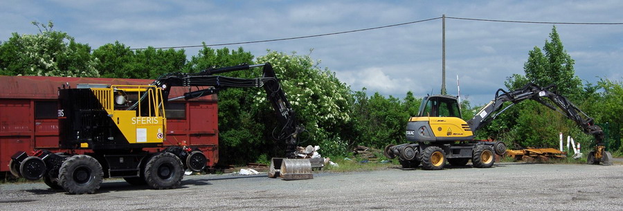 avec la présence de deux Pelles Rail route pour le RVB et d'un véhicule d'Offroy