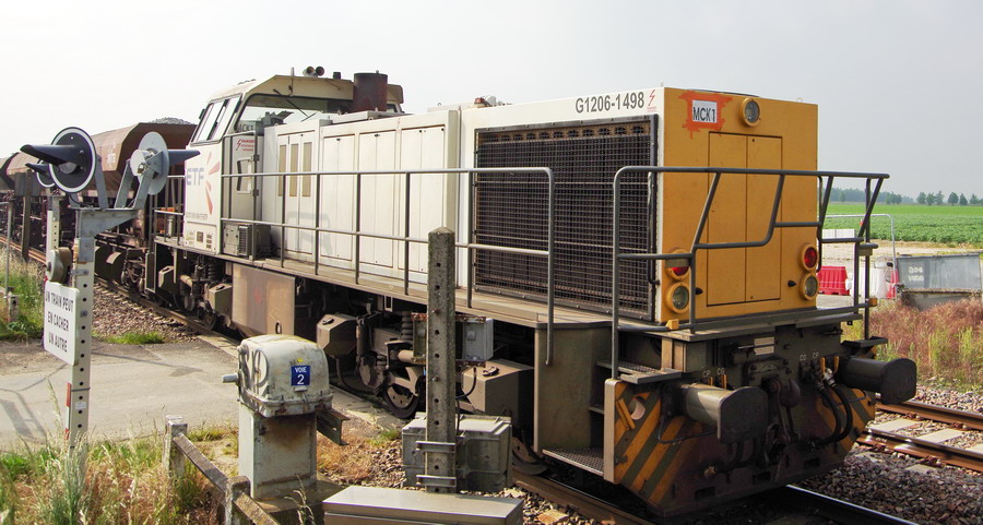 la G1206 BB 5001498 - 92 87 0 061 498-7 F-ETF sur le Train de pose P95 ETF 99 87 9 311 503-6 - ETF - "Addax PK 20 à Marcelcave le 04-06-2018