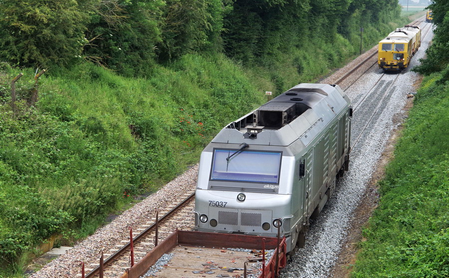 la BB 75037 sur la rame de TTX à Harbonnières (80) le 06-06-2018