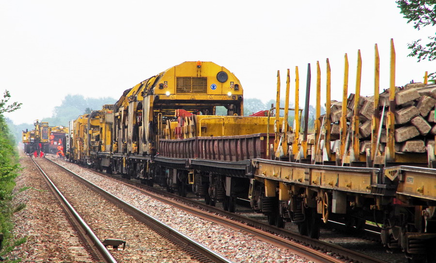 Fin de chantier pour ce jour et préparation du retour de la rame de 'la Coupe' Train de pose P95 ETF 99 87 9 311 503-6 à Wiencourt-l'Équipée (80) le 06-06-2018