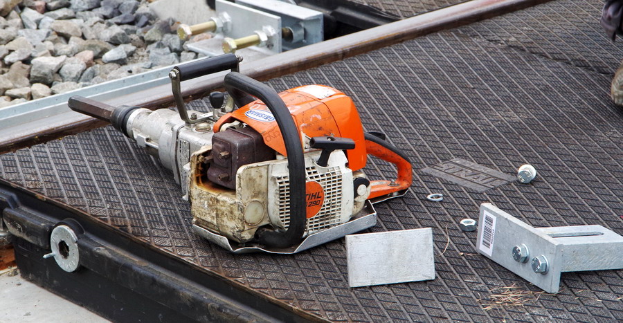 Boulonneuse portative Geismar MW 3 pour les mise en place des tirants pour les dalles STRAIL au PN n°36 d'Eppeville le 11-06-2018