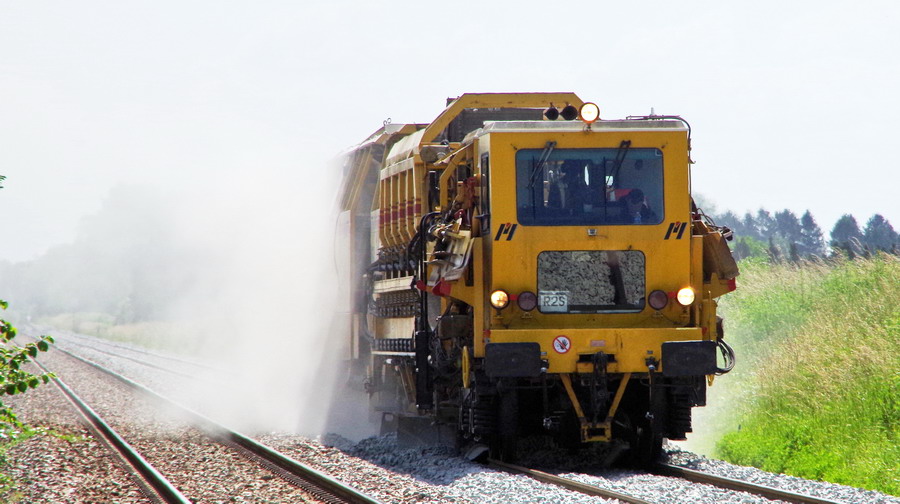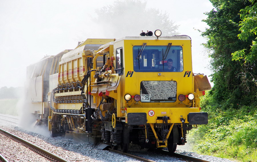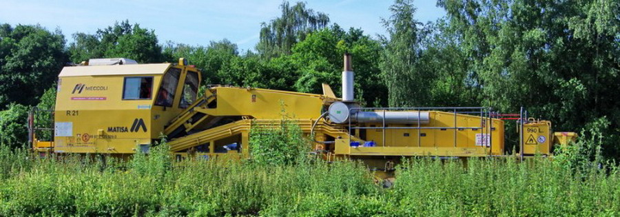 Régaleuse R21 Matisa 99 87 9 125 526-3 Meccoli le 15-06-2018 sur la base de travaux de la gare de Ham (80)