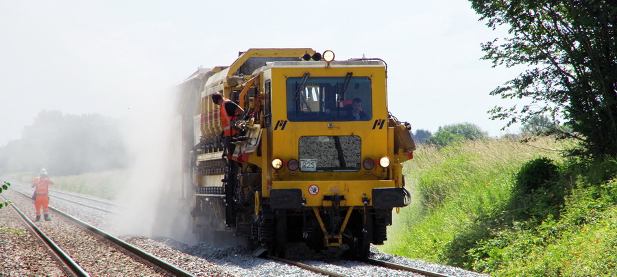 meulage de la soudure aluminothermique sur les LRS en gare de Marcelcave (80) PK 21,100 le 15-06-2018