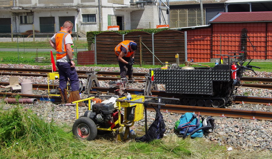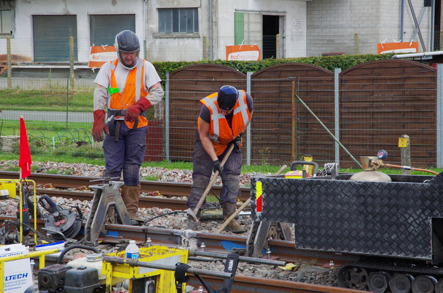 fin de séance de soudure aluminothermique sur les LRS en gare de Marcelcave (80) PK 21,100 le 15-06-2018