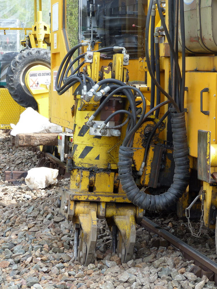 sur la base de travauveaux de la gare de Reignac-sur-Indre on trouve la pelle Rail route utilisée pour la réfection du PN 59