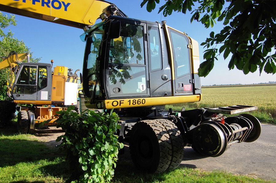 les Pelles Rail route UNAC 22 TRR Offroy 2 NGE OF 1862 et 1861 au niveau du PN n°11 à Harbonnière le 27-06-2018