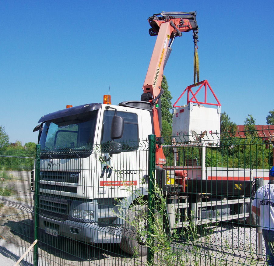 et d'une équipe de Meccoli pour faire le plein de la VaiaCar avec une cuve de gasoil qui se trouve sur le