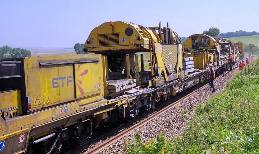 et avec toutes les sécurités dans le domaine ferroviaire avec un personnel d'ETF en protection pendant l'avancement