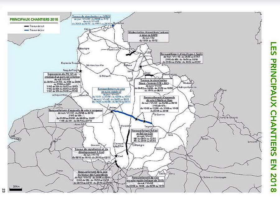 •Les tableaux et cartes des itinéraires à privilégier sur les principaux axes Fret : Paris-Lille, l’artère Nord-Est, Calais-Longueau et le passage de la frontière belge,