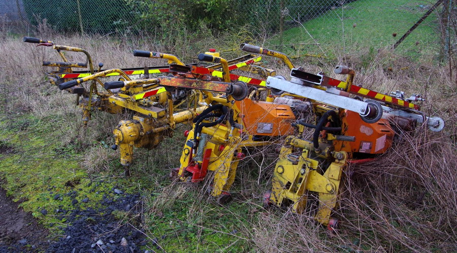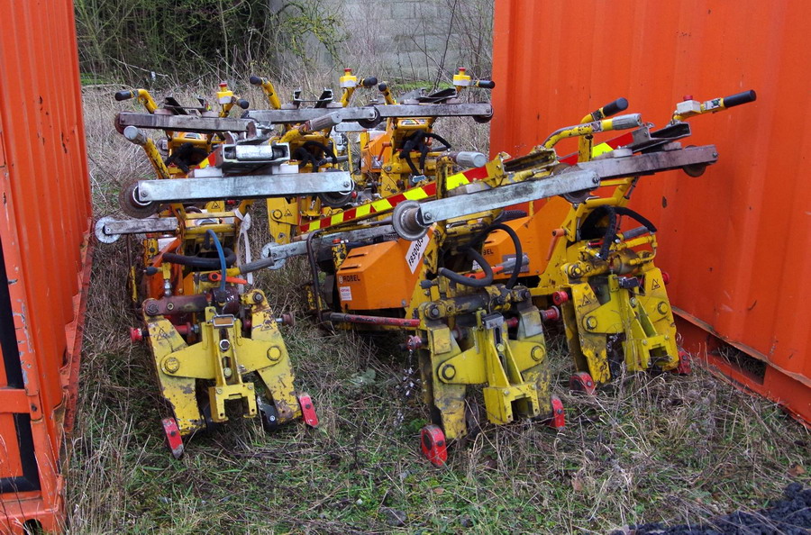 entre les containers de stockage de Colas Rail on trouve de Clipseuses ROBEL de type 34.01 de Colas Rail