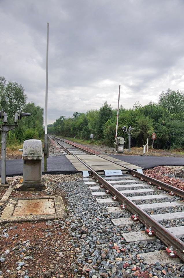 et maintenant le PN n°82 de la gare de Verneuil-sur-Serre PK 149,718 avec un passage routier avec des plaques de la Société STRAIL