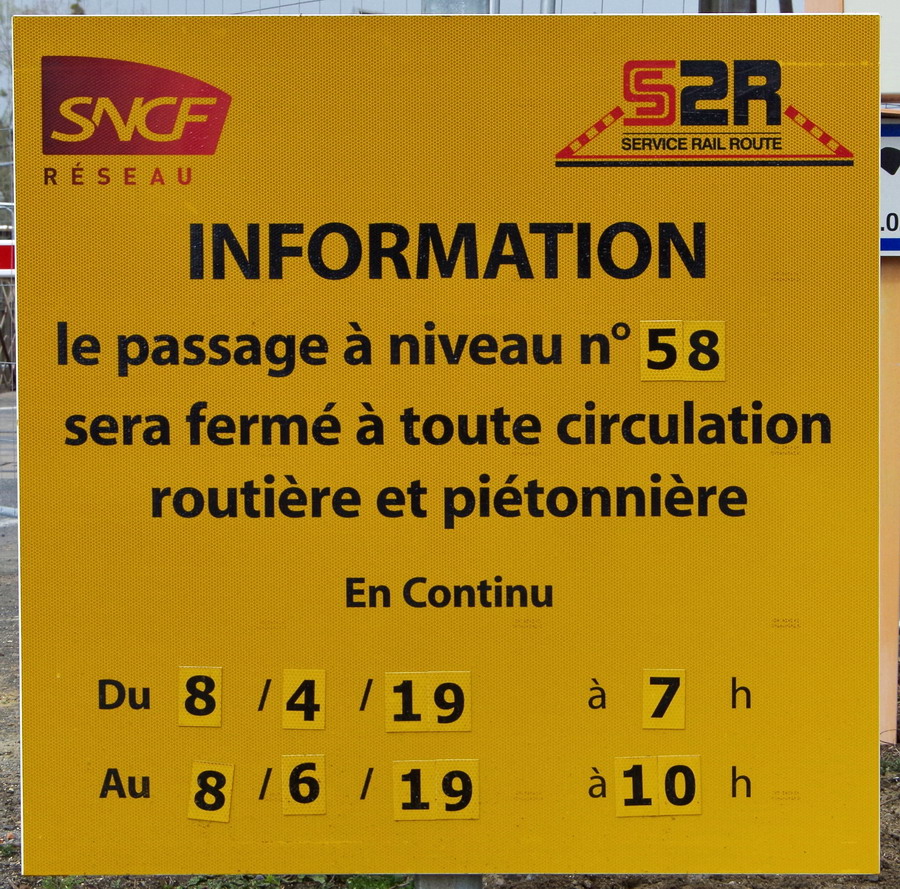 pour des travaux sur le PN n°58 entre le 08 avril à 7h0à et le 08 juin 2019 à 10h00